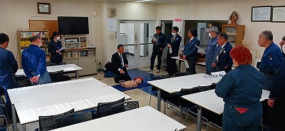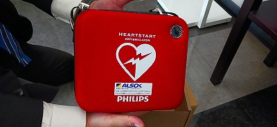 設置後に、食堂にてAEDの講習を実施して頂きました。