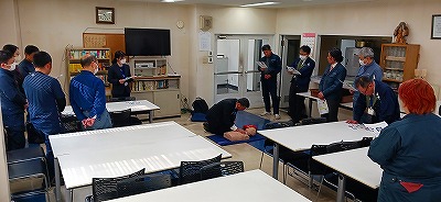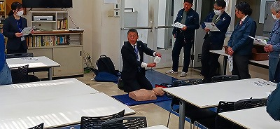 今回、実際に近い方法で講習を行って頂きました。この経験を踏まえて、緊急時は落ち着いて